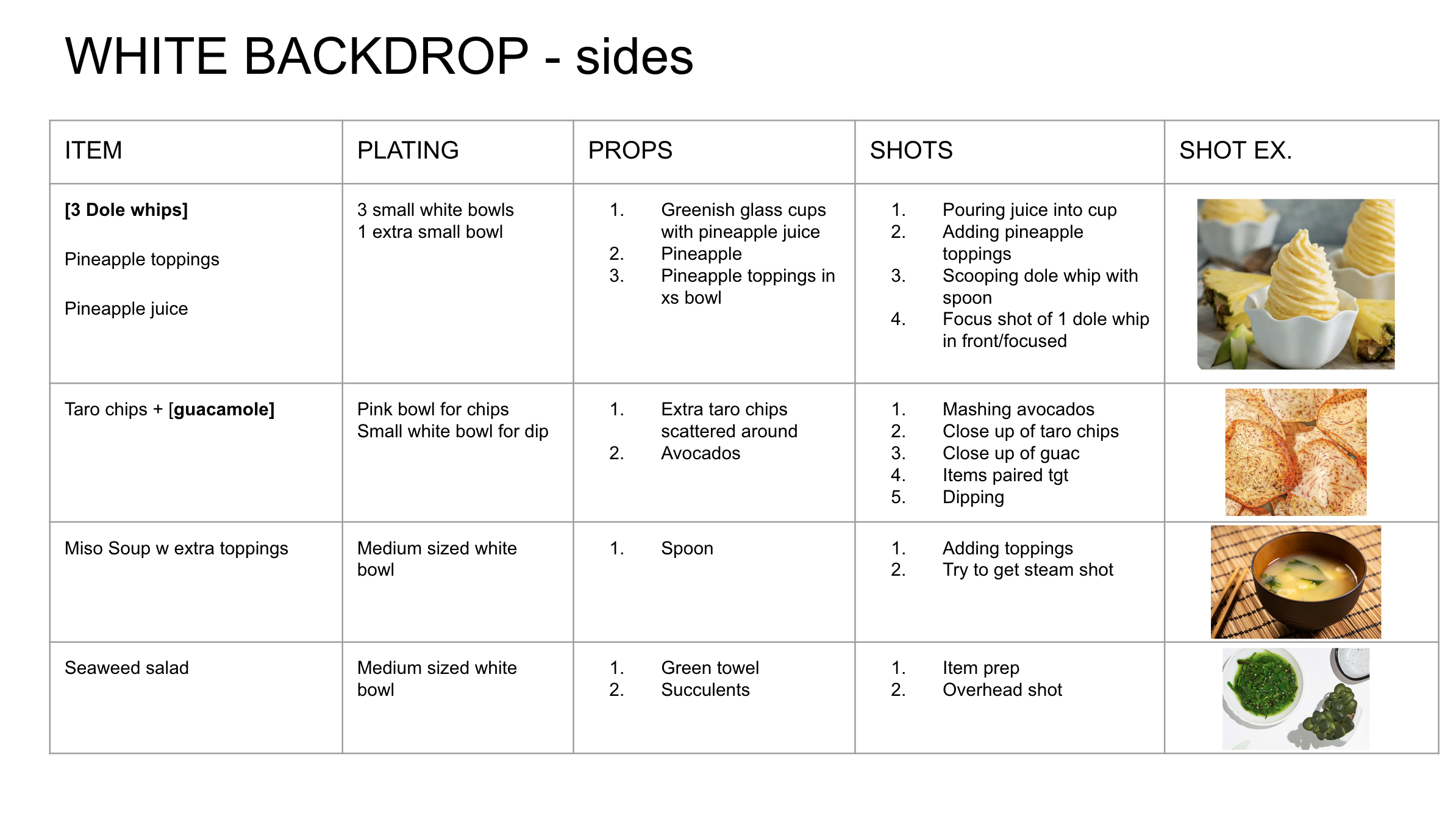 With my experience in the restaurant industry, I effectively communicate with store operations to ensure readiness for the shoot.